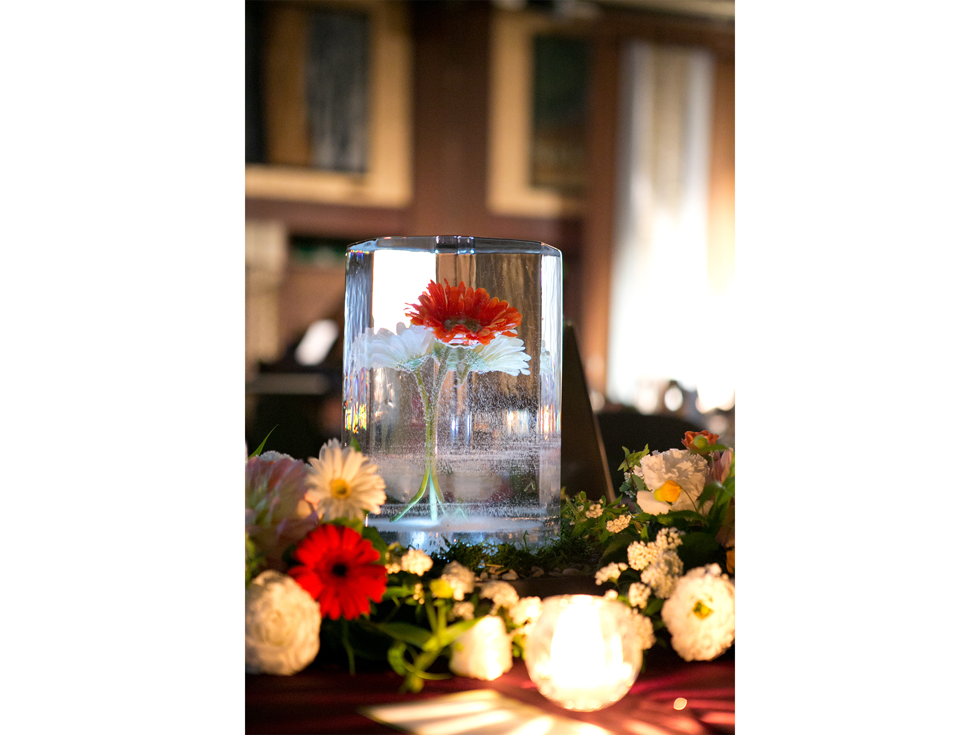 育美 何度もお邪魔していますが、いろんな色に変わるライティングが氷に映えて美しく、透き通る氷の中ではお魚がまるで泳いでいるよう。すごい技術です。