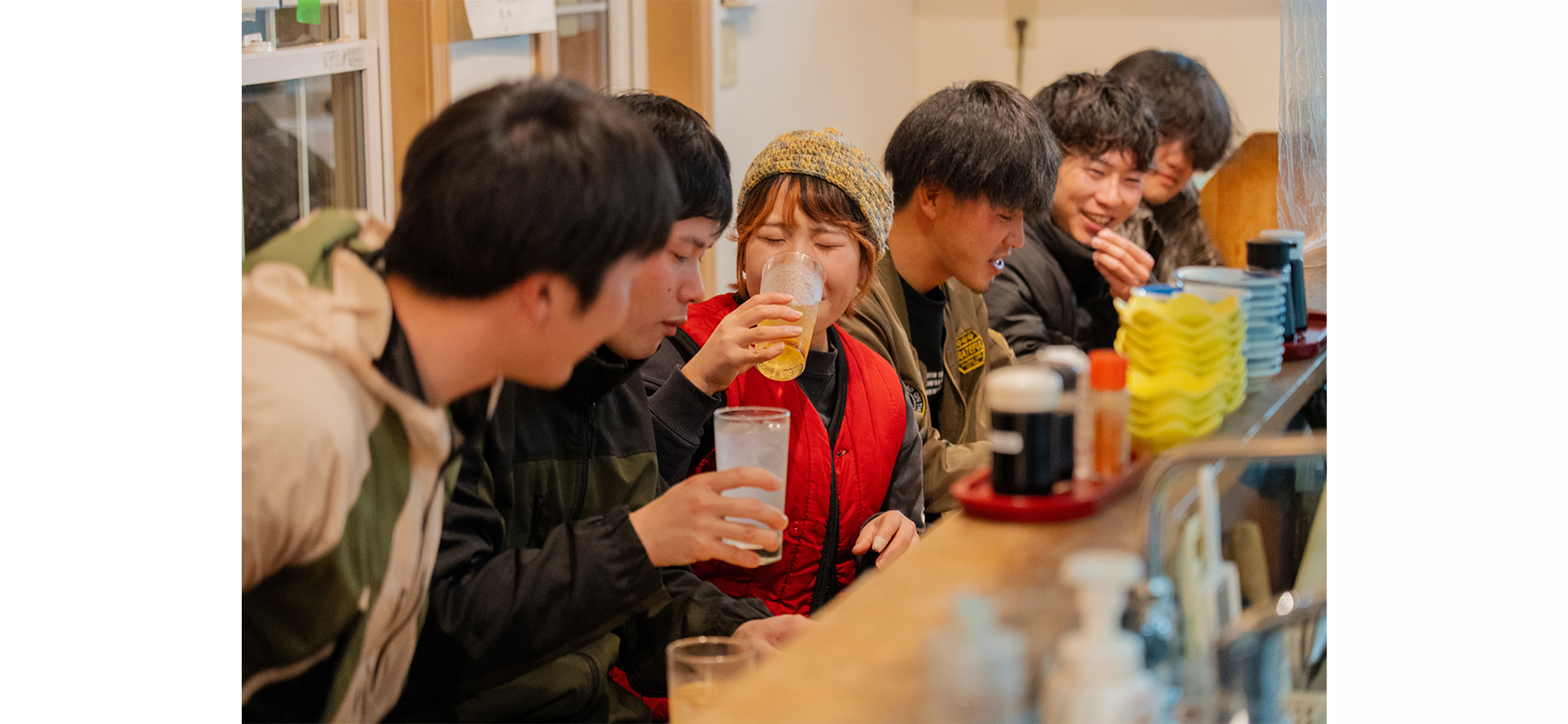 2025年12月某日、気仙沼魚市場前の横丁で、若手漁師さんが隔月開催しているという居酒屋を覗いてきました。この日参加した漁師さんはお手伝い含む7人。気仙沼出身、他県からの移住者など、さまざまな経歴の若手漁師さんの熱気に、心地よく酔ってしまいます。